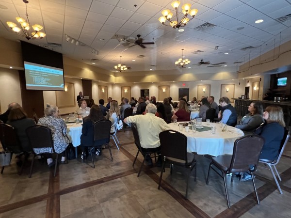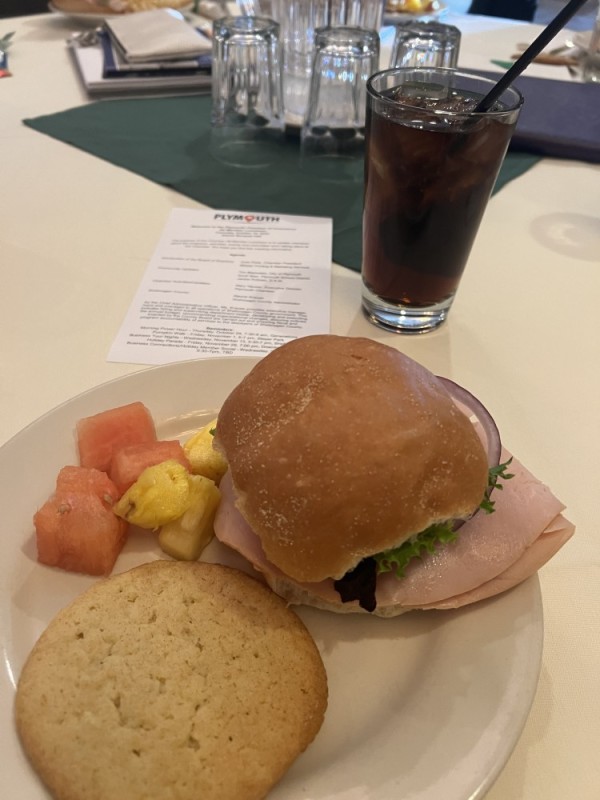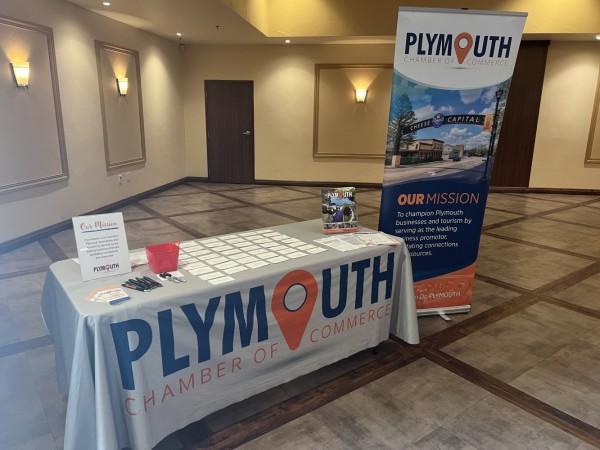A brief welcome was given by Plymouth Chamber Executive Director Mary Hauser, before attendees were ushered to grab lunch. The lunch was a ham or turkey sandwich, noodle salad, fruit and cookies. Attendees enjoyed the delicious lunch while networking with each other at their table.