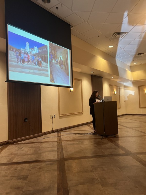 Mary Hauser was then back on stage and gave updates on everything happening at the Chamber. Upcoming member events include the Morning Power Hour on October 24th with Courtney Booth, Certified Leadership Development Coach and Trainer, of Booth Leadership, Business Tour Nights on November 13th at Shell Plastics and our Business Connections/Holiday Member Social on December 11th. Other exciting community events include the Pumpkin Walk and Food Pantry Stock on Friday, November 1st and the Holiday Gathering/Christmas Parade on Friday, November 29th. She also explained how the 2025 Visitor Guide Ad Contract and 2025 Sponsorship Opportunities are now available. Finally, she shared how the first Chamber Travel Trip to Italy was a success. Check out the previous blog post to learn more details about the trip.