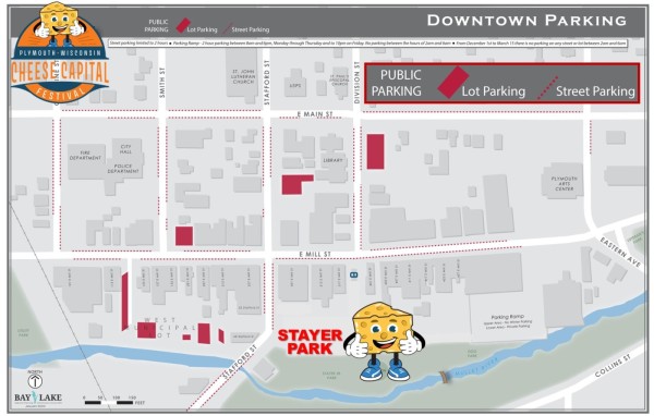 Parking will be available on Plymouth city streets along Mill Street and north of Mill Street. Looking for directions to the event? Enter "39 Stafford Street, Plymouth, WI 53073" into your map device.